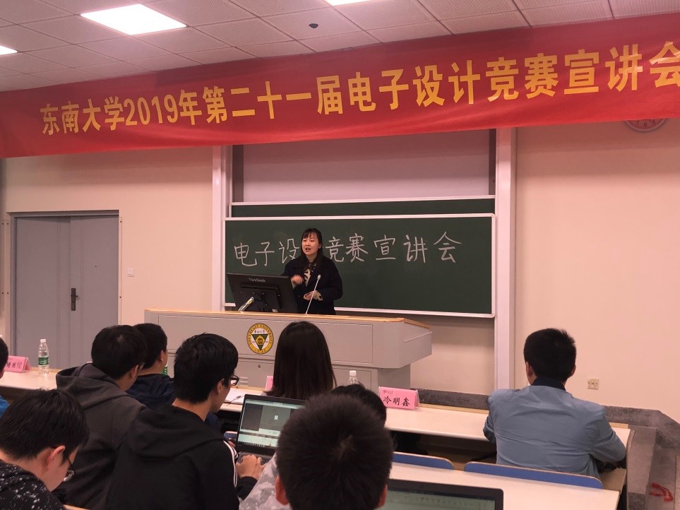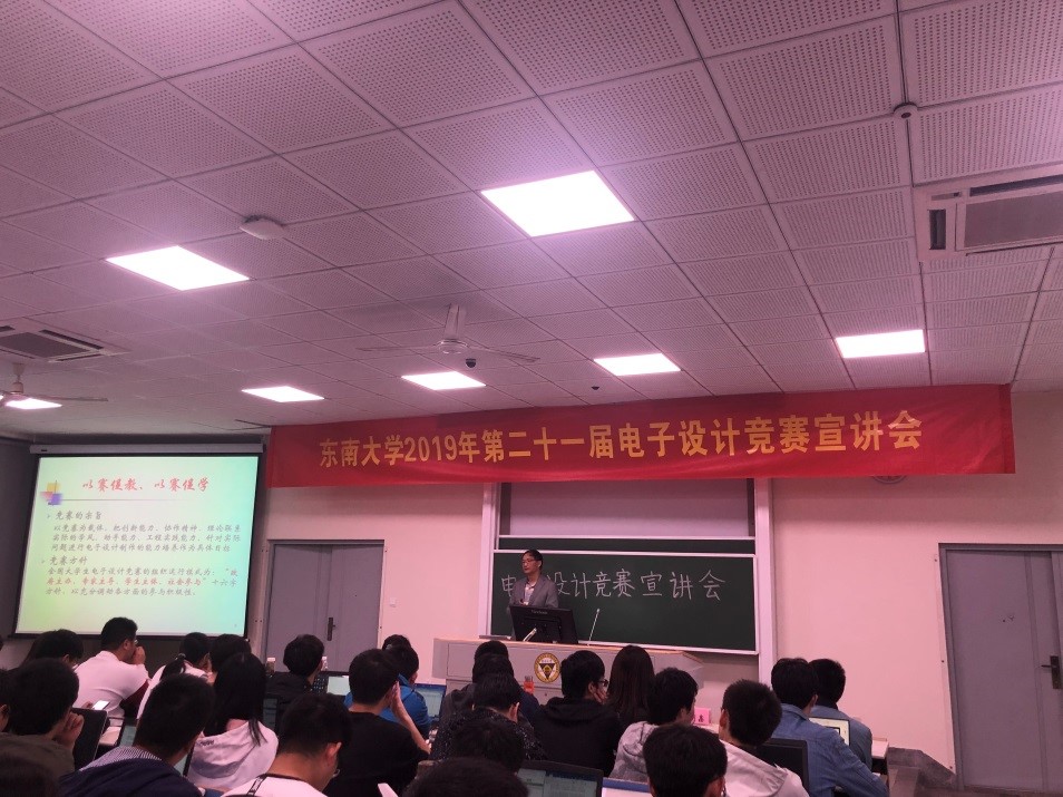 由主持人简要介绍了到场嘉宾和宣讲会流程之后,宣讲会正式开始。首先,电工电子中心堵国樑教授从历届电子设计竞赛的赛制和规则讲起,讲解了今年比赛的具体安排和流程,接着展示了近年来必威BETWAY官网在电子设计竞赛的省赛和国赛中取得的骄人成绩,鼓励同学们积极参加竞赛,锻炼自己的能力,同时为学校争光。最后,堵国樑教授讲到了今年的电子设计竞赛的培训时间和安排,让同学们对电子设计竞赛有了比较详细的了解。