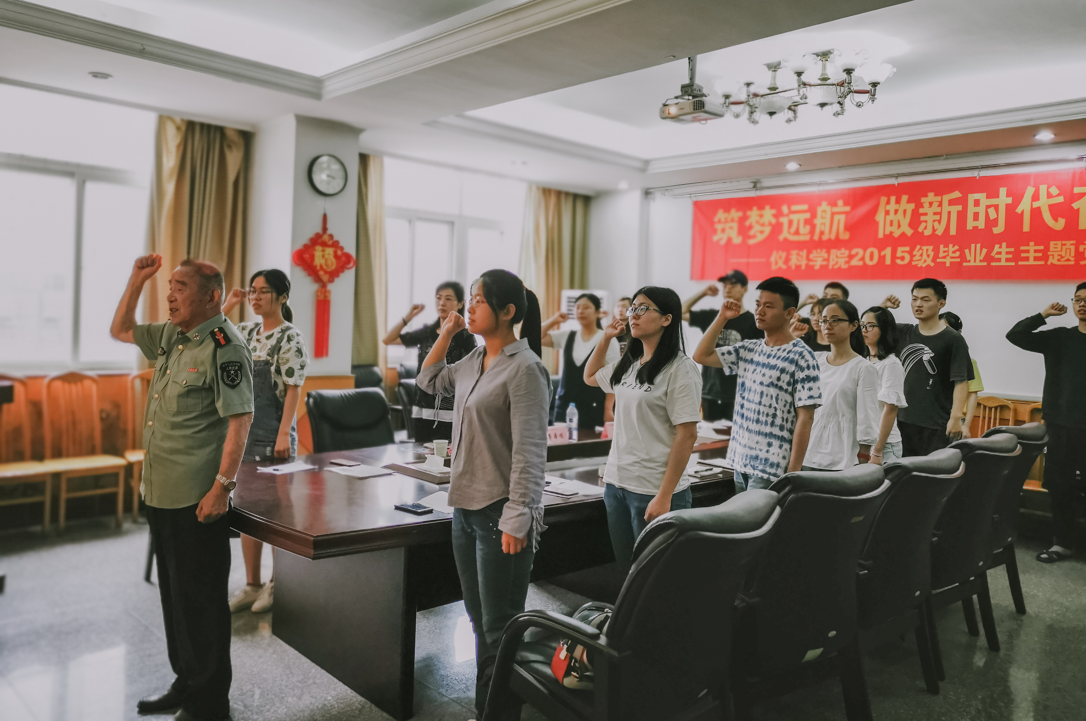 最后,在即将面临毕业的一刻,由董老师领誓,全体师生在党旗下重温入党誓词,结束了当天的活动。