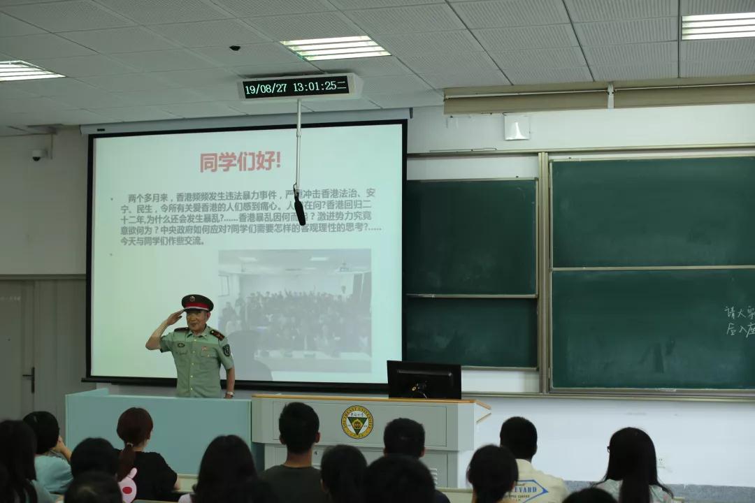 讲座开始前,董教授在讲台上以一个军礼向大家问好,展示出董教授优秀的军人形象,虽年老但是满腔热血丝毫不减。