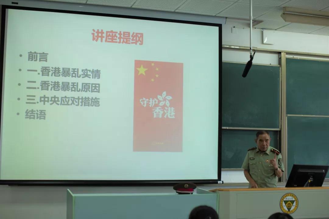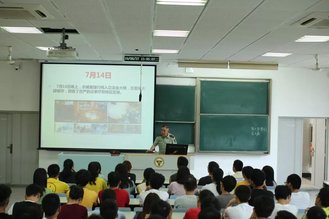 讲座最后,董教授详细说明了中央应对香港问题的措施。首先是习近平主席对香港问题的态度,接着董教授讲了最近中央作出的新指示,在深圳建设中国特色社会主义先行示范区和建设粤港澳大湾新区,董教授说这是社会主义建设过程中的两件大事,对于我国未来的发展有重要作用,而反观香港如果继续这么乱下去不好好搞建设,吃亏的只能是他们自己,但是香港是我们中国的,我们要帮助香港度过这次难关。