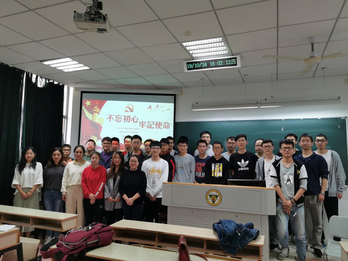 为了深入贯彻落实党的十九大精神,持续推进“不忘初心,牢记使命”主题教育工作的开展,加强支部党员理论教育,夯实党建根基,2019年10月24日下午3:00,必威·BETWAY19硕测控技术党支部书记仲点石同志在中山院609给支部全体党员、积极分子、入党申请人进行一场主题党课教育。