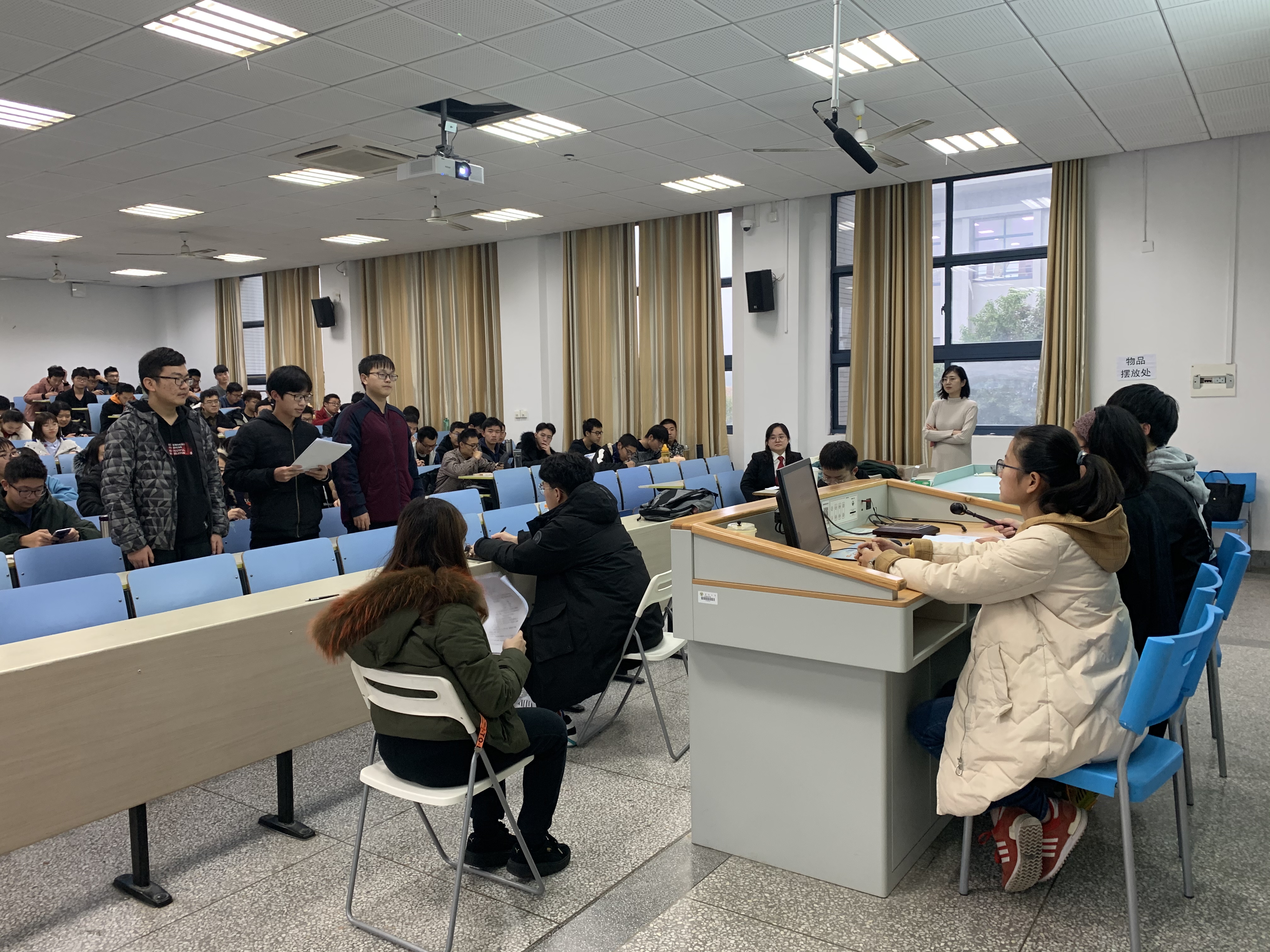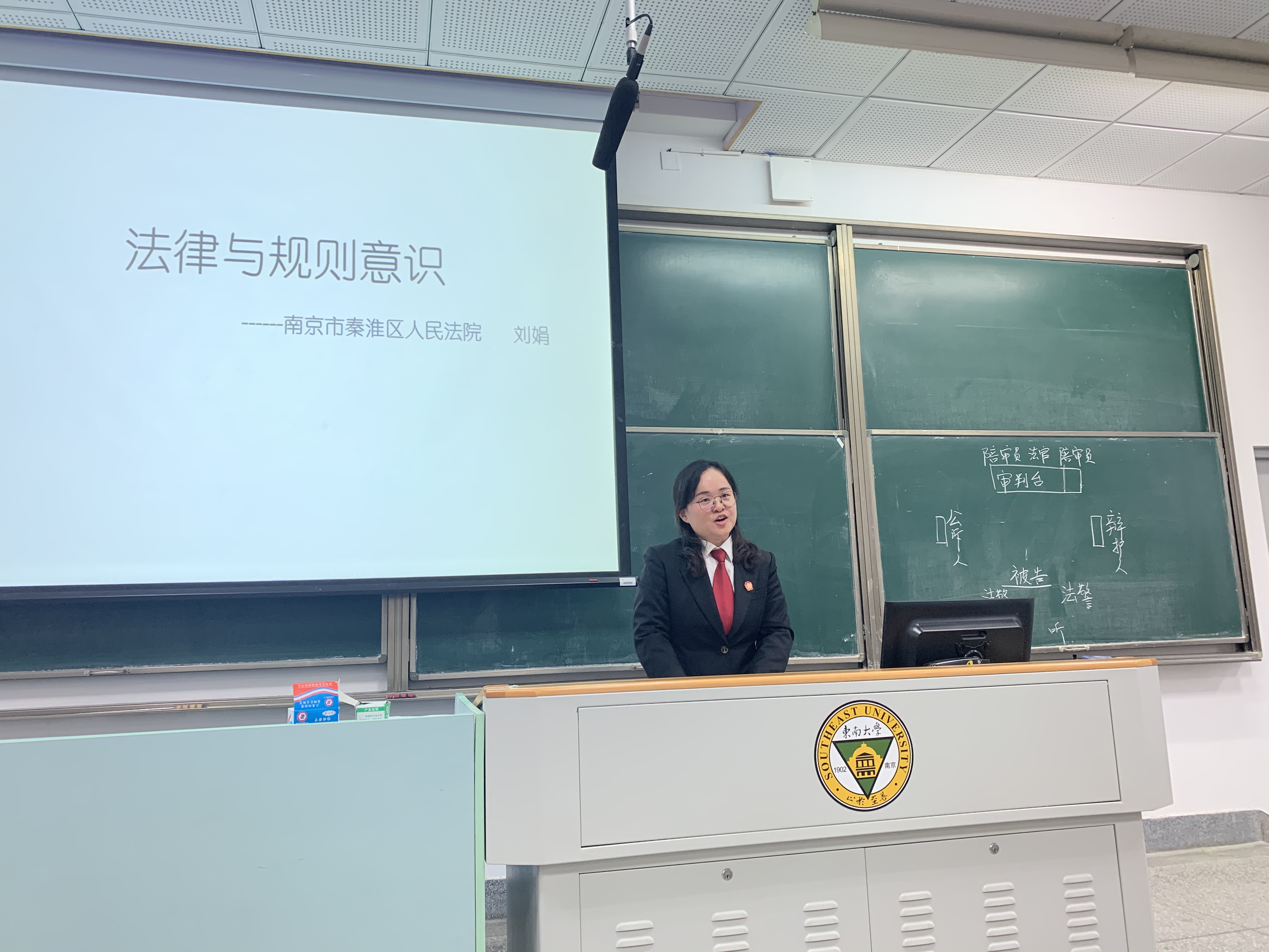 12月25日下午2:00,我们法律专题活动在教四204成功举办。本次活动包括模拟法庭及法律专题讲座两个部分,活动特邀嘉宾是来自南京市秦淮区人民法院刑事庭的刘娟法官。自动化电气测控大类新生200余人及思政课教师丁小丽、江莉莉、钱程老师参与了此次活动。