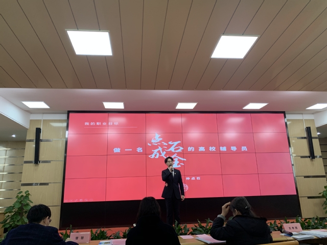历经长期的准备,仲点石同学在职业规划大赛过程中充分展示自我的成长经历和职业规划,通过讲述生动的东大故事,将职业规划理念传递给更多的学子。他以“做一名‘点石成金’的高校辅导员”为职业目标,从国家发展大势下青年培养的重要性出发,以亲身的成长经历为主线,讲述了自己如何树立起辅导员的职业目标。然后,他通过一系列精彩的陈述,展示了胜任辅导员这一职业的核心竞争力。最后,在此基础上,他描述了未来的规划与发展路线,并决心用自己全部的热情投身到“培养具有家国情怀和国际视野,担当引领未来和造福人类的领军人才”的实践中去,践行立德树人的伟大使命,传递“以科学名世,以人才报国”的东大梦想。