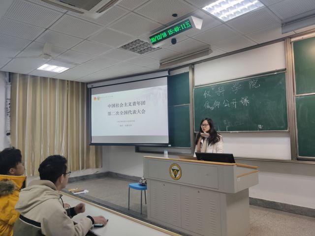 12月18日下午,仪科科学与工程学院团委书记彭袁圆老师面向19级团员青年开展了“学习团二大历史,绽放青春光芒”主题团课,带领同学们学习了“团二大”的召开过程及其重要历史意义,重温了必威BETWAY官网的光荣革命传统。