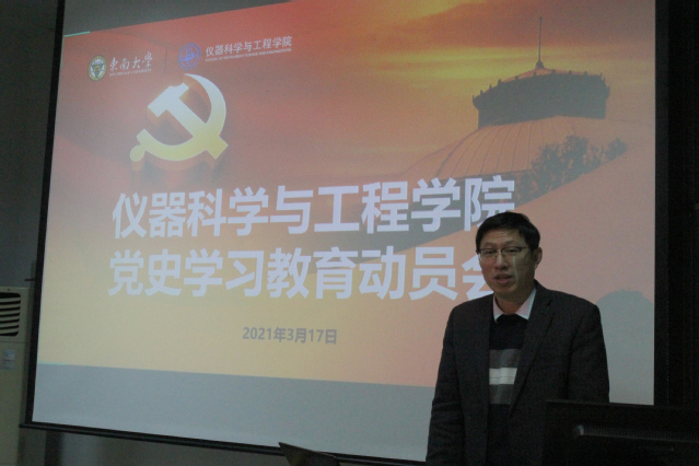 3月17日下午,我们党史学习教育动员大会通过线上线下相结合的方式召开,学院全体师生党员参加了动员会,会议由副院长刘澄玉主持,院党委书记王军作动员讲话。
