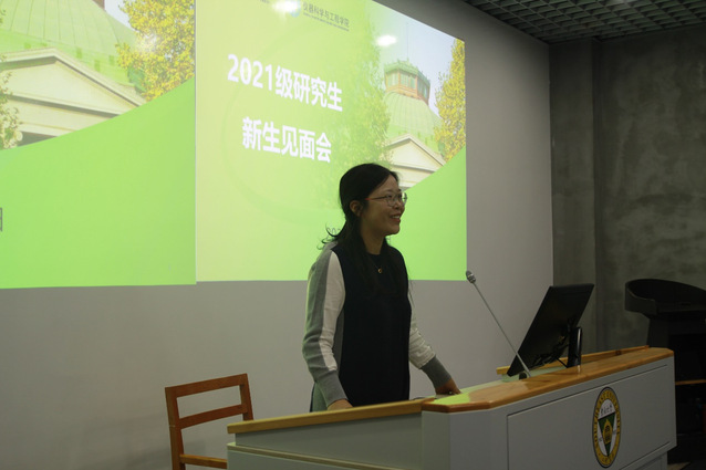 刘澄玉老师向同学们介绍了学院的基本情况,包括学科特色及发展概况、师资力量、研究方向、人才培养及国际交流合作等,并寄语新生要充分挖掘自身潜力、忠于内心、勇担重任,做仰望星空又脚踏实地的领军人才!