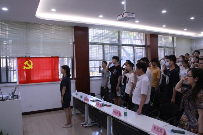 活动最后,学院党委书记王军老师带领全体党员重温了入党誓词,整齐洪亮的宣誓声,是毕业生党员们在离校前对党组织许下的诺言,是立志在走上新的岗位后继续发光发热的承诺,也是为母校争光为学院添彩的心声。