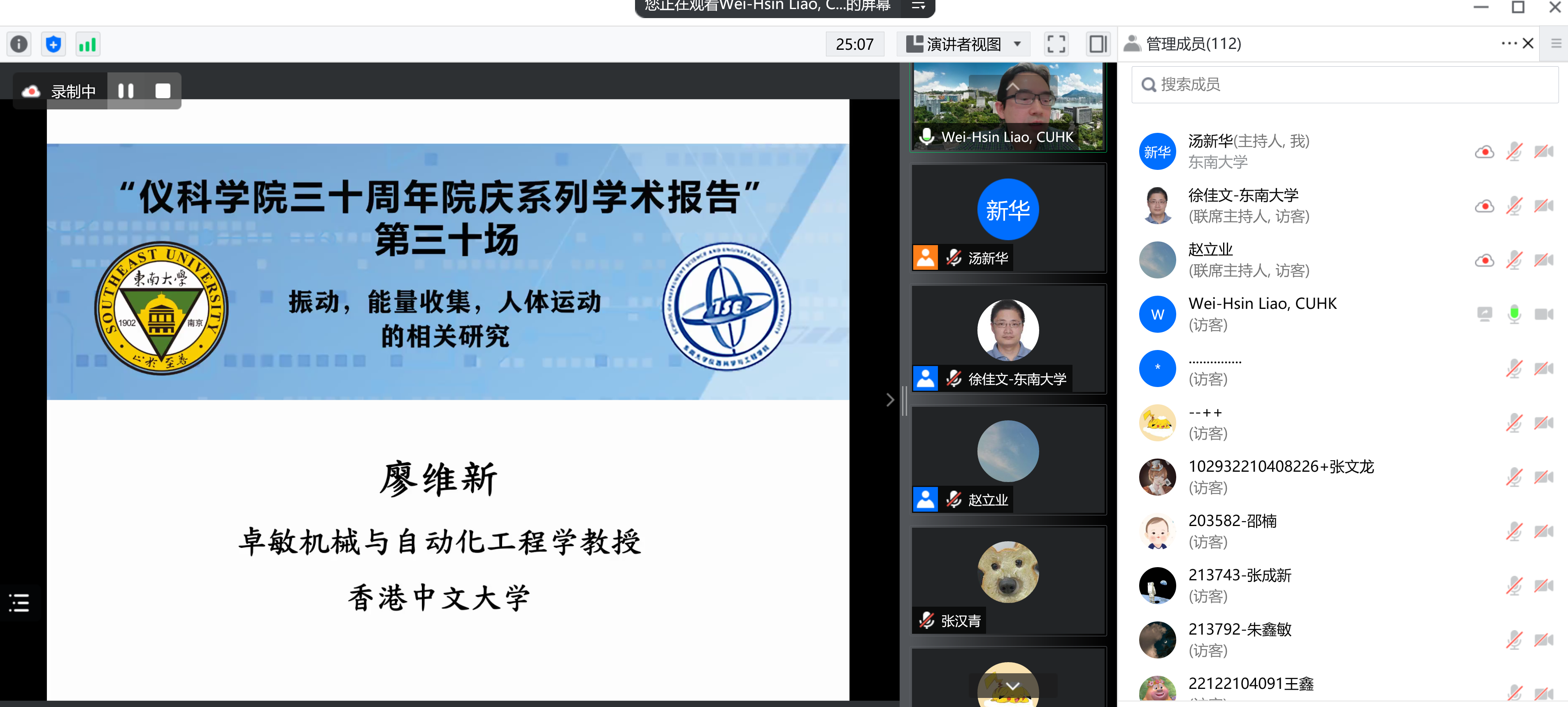 2022年6月22日晚20:00,必威·BETWAY举办了三十周年院庆系列学术报告第三十场次,本次邀请到了香港中文大学卓敏机械与自动化工程学院廖维新教授,分享其在振动,能量收集,人体运动方向的相关研究成果。