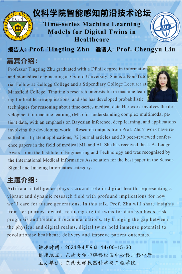 讲座预告:Time-series Machine Learning Models for Digital Twins in Healthcare