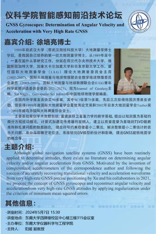 讲座预告:GNSS Gyroscopes: Determination of Angular Velocity and Acceleration with Very High Rate GNSS
