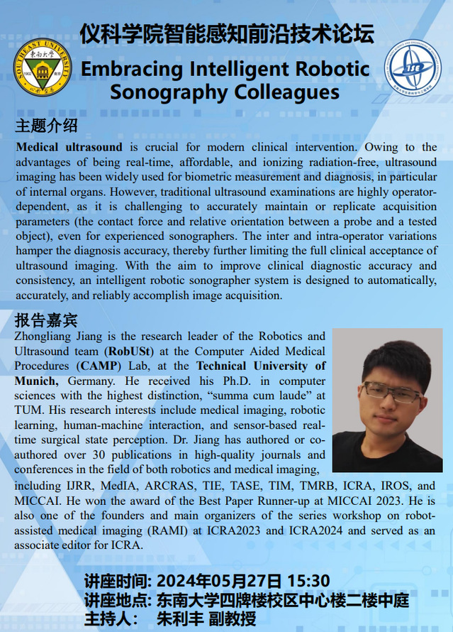 讲座预告:Embracing Intelligent Robotic Sonography Colleagues