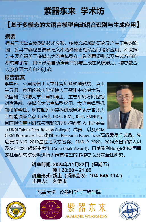 讲座预告:基于多模态的大语言模型自动语音识别与生成应用