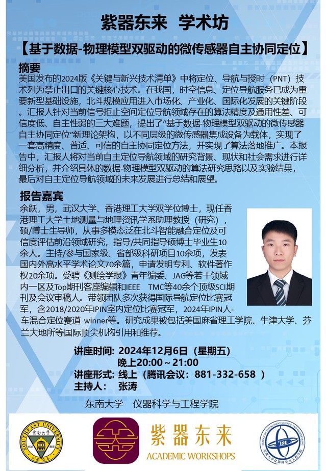 讲座预告:基于数据-物理模型双驱动的微传感器 自主协同定位