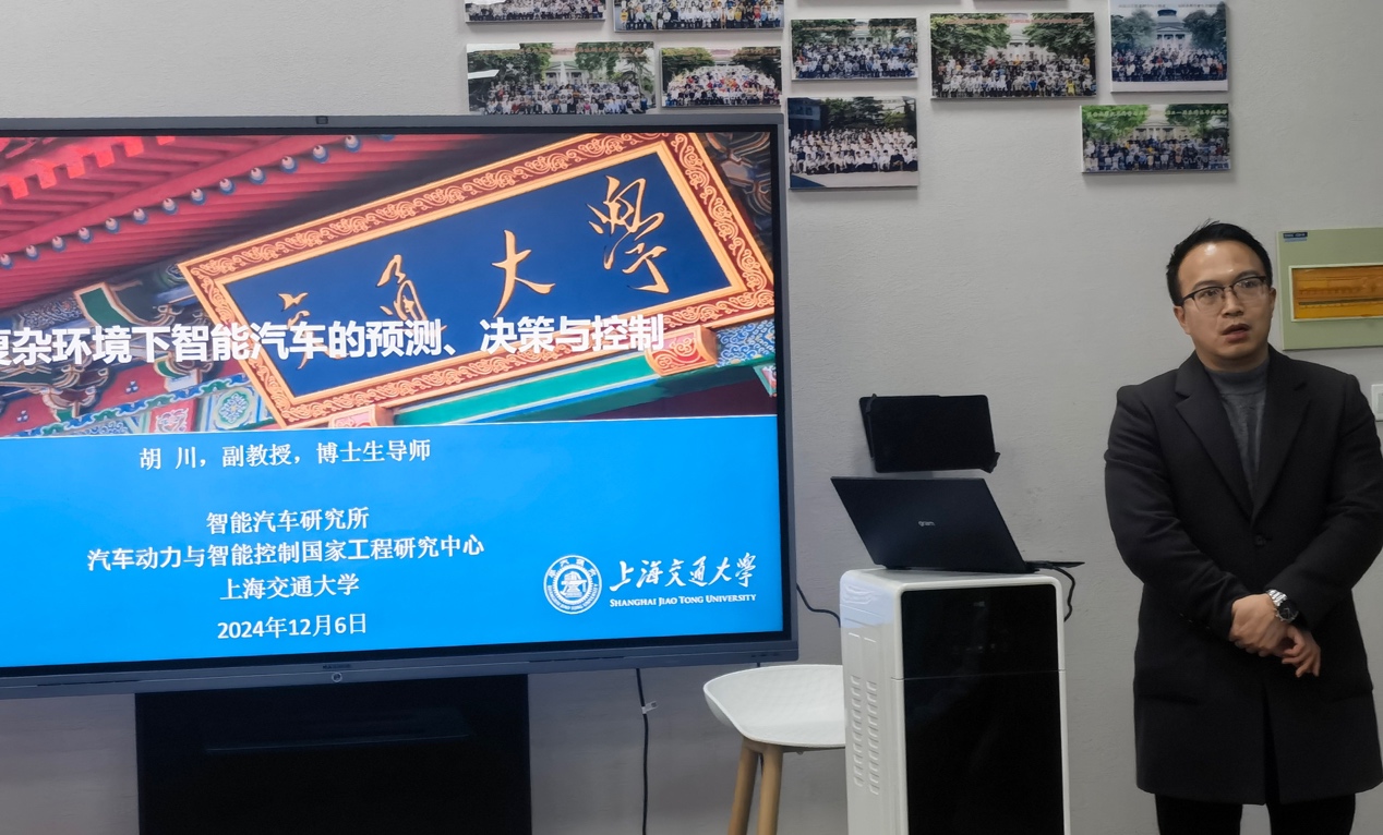 2024年12月6日下午四点,在中心楼2楼研讨室,来自上海交通大学机械与动力工程学院智能汽车研究所的胡川副教授莅临必威·BETWAY,为学子们带来了一场精彩的学术分享。胡川老师博士毕业于加拿大麦克马斯特大学,回国后任教于上海交通大学,研究方向主要围绕陆海智能载运和无人系统,发表多篇高水平学术论文,目前正在主持一项国家海外优秀青年科学基金项目。